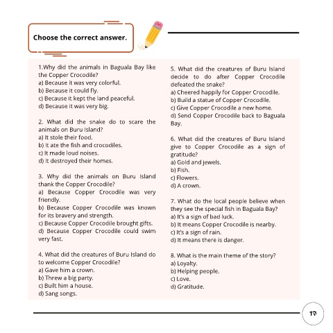 4. What did the creatures of Buru Island do   8. What is the main theme of the story?