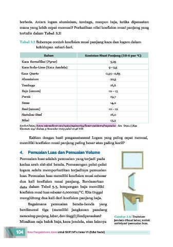 Tabel 3.3 Beberapa contoh koefisien muai panjang kaca dan logam dalam