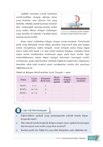 mobilanmu, pada tabel berikut. Salinlah Tabel 4.1 pada buku catatanmu,
