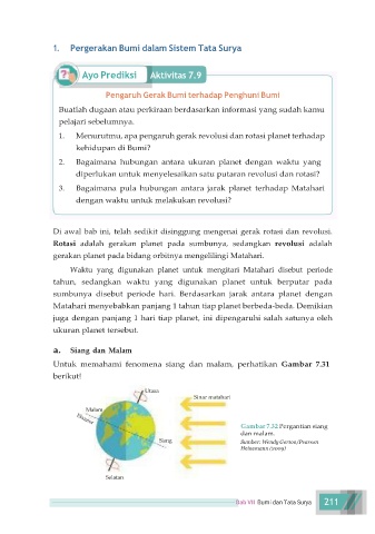 Untuk memahami fenomena siang dan malam, perhatikan Gambar 7.31