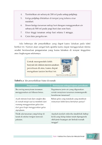 Tabel 1.1 Ide penyelidikan Sains di rumah