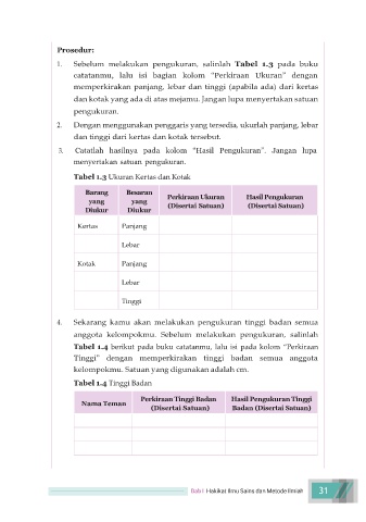 1. Sebelum melakukan pengukuran, salinlah Tabel 1.3 pada buku