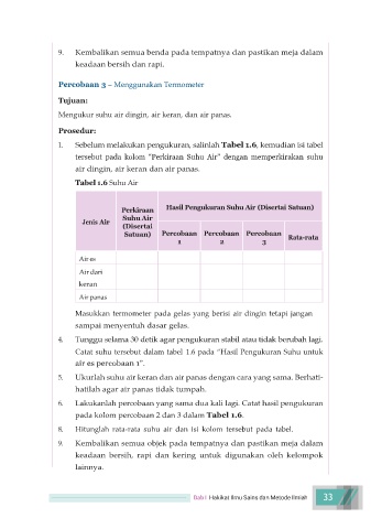 Catat suhu tersebut dalam tabel 1.6 pada “Hasil Pengukuran Suhu untuk