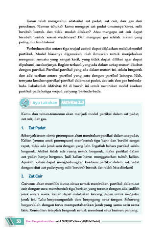 percobaan. Namun tahukah kamu mengapa zat padat umumnya keras, sulit