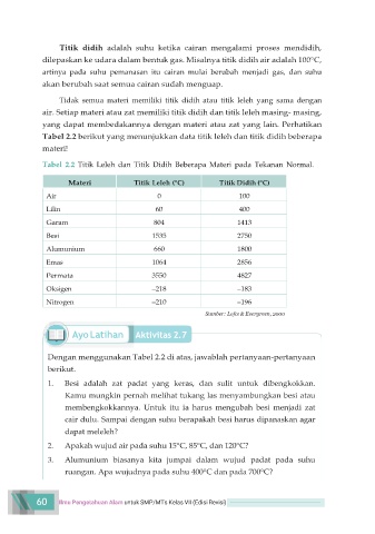 Tabel 2.2 Titik Leleh dan Titik Didih Beberapa Materi pada Tekanan Normal.