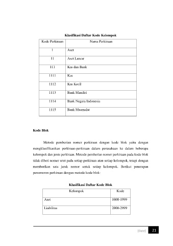 kelompok dan jenis perkiraan. Metode pemberian nomer perkiraan pada kode blok
