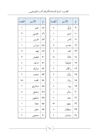 م الاسم العدد م الاسم العدد