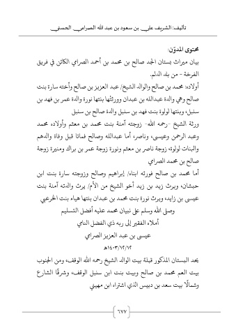 أما محمد بن صالح فورثه ابناه /إبراهيم وصالح وزوجته سارة بنت ابن