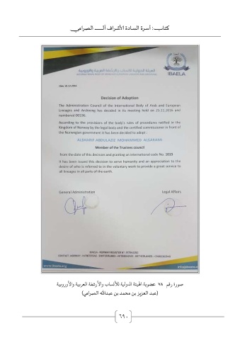 كتاب :أسرة السادة الأشراف آل الصرامي صورة رقم 78عضوية الهيئة الدولية للأنساب والأرشفة العربية والأوروبية (عبد الع ي بن م مد بن عبدالله الصرام ) 690