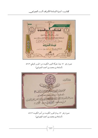 كتاب :أسرة السادة الأشراف آل الصرامي صورة رقم 81نوط معركة تحرير الكويت من الحرس الوطن 1412ه (أسامة بن م مد بن أحمد الصرام ) صورة رقم 82وسام تحرير الكويت من أمير الكويت 1412ه (أسامة بن م مد بن أحمد الصرام ) 692