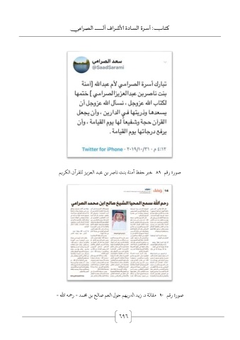 كتاب :أسرة السادة الأشراف آل الصرامي صورة رقم 89خبر حفظ آمنة بنت ناصر بن عبد العزيز للقرآن الكريم صورة رقم 90مقالة د .زيد الدريهم حول العم صالح بن محمد -رحمه الله - 696