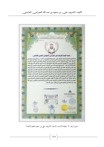 تأليف :الشريف علي بن سعود بن عبد الله الصرامي الحسني صورة رقم 91شهادة النسب للس ِيّد الشريف علي بن سعود عضو اللجنة 697