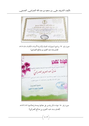 صورة رقم 98شهادة شكر وتقدير على عطائها وجدها وإخلصها 1432/1431ه