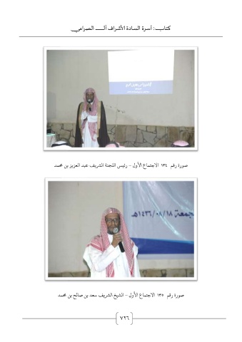 كتاب :أسرة السادة الأشراف آل الصرامي صورة رقم 134الاجتماع الأول – رئيس اللجنة الشريف عبد العزيز بن محمد صورة رقم 135الاجتماع الأول – الشيخ الشريف سعد بن صالح بن محمد 726