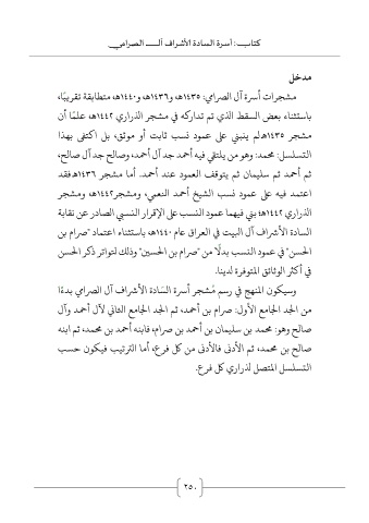 وسيكون المنهج في رسم مشجر أسرة السادة الأشراف آل الصرامي بدءا