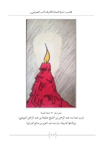 كتاب :أسرة السادة الأشراف آل الصرامي صورة رقم 99شمعة مضيئة (رسم :نعمة بنت عبد الرحمن بن الشيخ خليفة بن عبد الرحمن النويشي، ووالدتها الشريفة سارة بنت عبد العزيز بن صالح الصرامي) 702