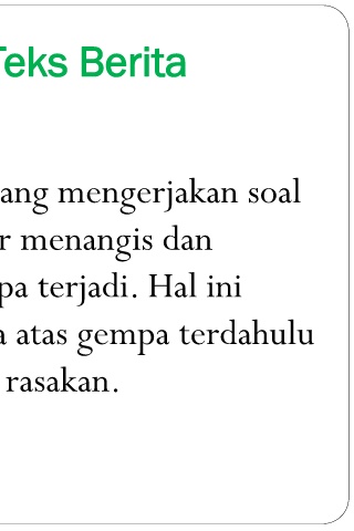 Contoh Teks Berita Para siswa yang sedang mengerjakan soal ujian akhir semester menangis dan ketakutan saat gempa terjadi. Hal ini dikarenakan trauma atas gempa terdahulu yang masih mereka rasakan.