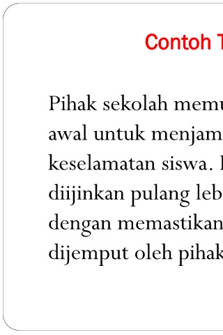 Contoh Teks Berita Pihak sekolah memulangkan siswa lebih awal untuk menjamin keamanan dan keselamatan siswa. Para siswa boleh diijinkan pulang lebih awal namun dengan memastikan bahwa siswa dijemput oleh pihak keluarga.