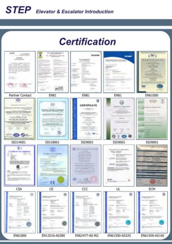 STEP Elevator & Escalator Introduction Certification Partner Contact EN81 EN81 EN81 EN61000 ISO14001 ISO18001 ISO9001 ISO9001 ISO9001 CSA CE CCC UL ECM EN61800 EN12016-AS380 EN62477-AS-RG EN61500-AS320 EN61500-AS160