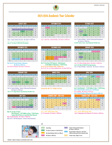 First day of Semester or Early Dismissal No School/Holiday Child Care Offered No School or Child Care