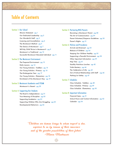 Section 3: Montessori Academics and STEAM Montessori is Steam! - pg 20