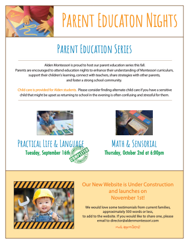 Practical Life & Language Math & Sensorial Tuesday, September 16th Thursday, October 2nd at 6:00pm