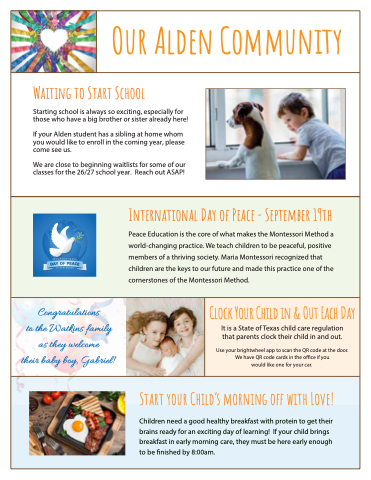 Children need a good healthy breakfast with protein to get their brains ready for an exciting day of learning! If your child brings breakfast in early morning care, they must be here early enough to be finished by 8:00am.