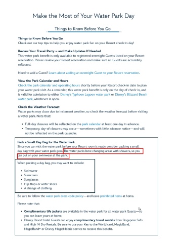 your water park visit. As a reminder, this wat er park benefit is only on t he day of check-in, and