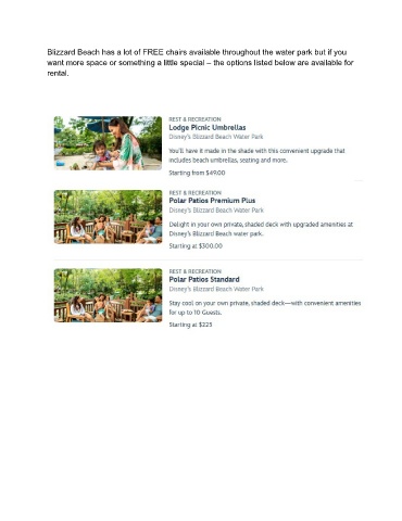 Blizzard Beach has a lot of FREE chairs available throughout the water park but if you