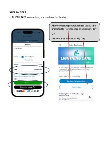 STEP BY STEP • CHECK OUT to complete your purchase for the day After completing your purchase you will be prompted to Purchase for another park day OR View your selections on My Day