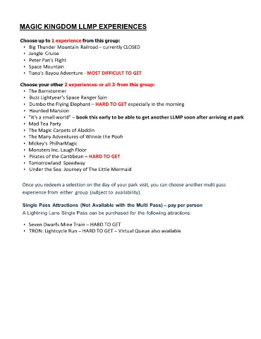 MAGIC KINGDOM LLMP EXPERIENCES