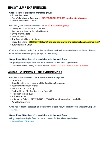 ANIMAL KINGDOM LLMP EXPERIENCES