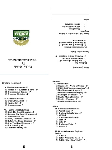 Discovery Island (continued) Kingdom 25 Anniversary – P Rhino, bird, elephant, tiger, Animal Eyes/May You Feel with your Heart – P Elephant, What You See with Your Dug with a squirrel – P 25th– P Dory & Nemo, Animal Kingdom Tree of Life, 2024 – P Randall, Monsters Inc. 3 of 6 – P Safari Mickey, Animal Kingdom 25th Animal Kingdom Logo – P Timon, Jungle Grub – P – P 7. Discovery Trading Company #3