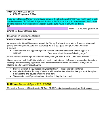 If you stayed late on Monday and enjoyed some of the attractions at EPCOT you might want to split