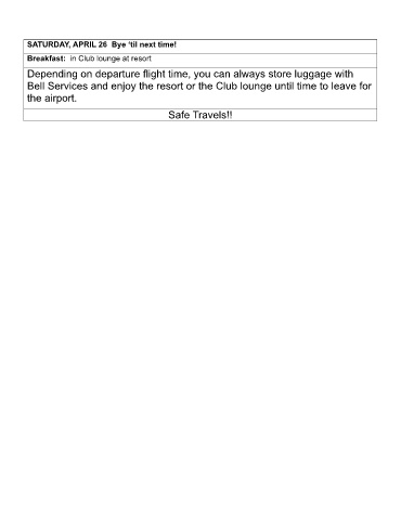 Bell Services and enjoy the resort or the Club lounge until time to leave for