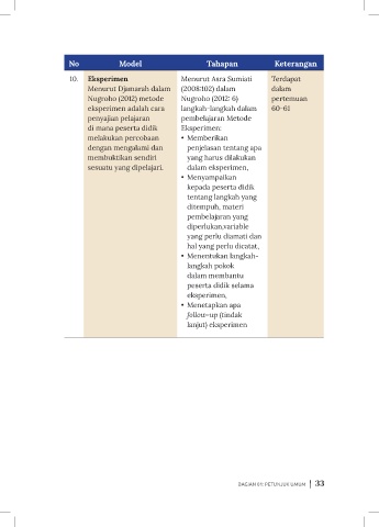 10.  Eksperimen                 Menurut Asra Sumiati      Terdapat