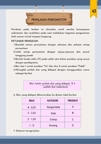 Penilaian pada lembar ini ditujukan untuk menilai kemampuan