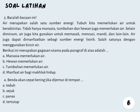 4. Benda akan cepat kering jika dijemur di tempat ….