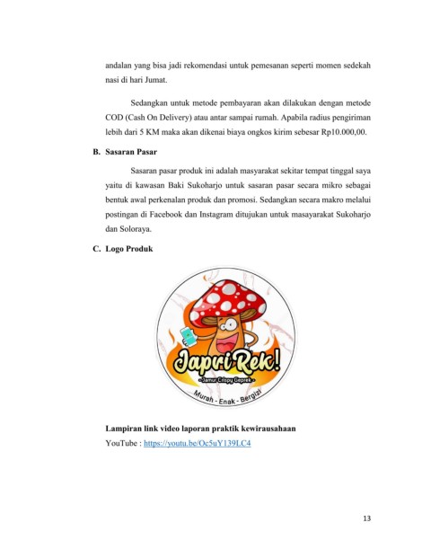 Sasaran pasar produk ini adalah masyarakat sekitar tempat tinggal saya