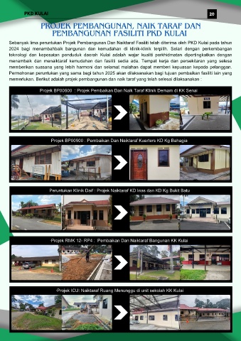 Sebanyak lima peruntukan Projek Pembangunan Dan Naiktaraf Fasiliti telah diterima oleh PKD Kulai pada tahun