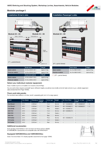 VARO Shelving and Stocking System, Workshop Lorries, Assortments, Vehicle Modules