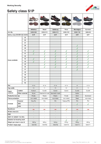 Safety class DIN EN ISO 20345 S1P S1P S1P S1P S1P S1P