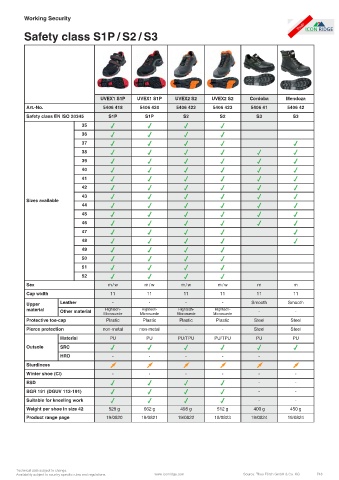Safety class EN ISO 20345 S1P S1P S2 S2 S3 S3