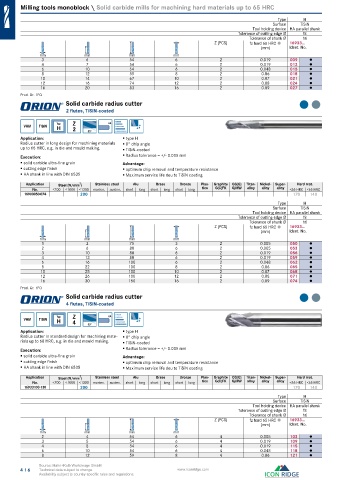 Radius cutter in standard design for machining mate- 0° chip angle