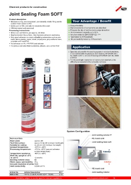 Tack-free surface: approx. 6 min (30 mm foam line length) Joint sealing foam soft