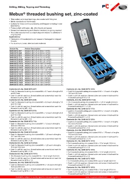 • Each 5× threaded bushing zinc-coated M9 × 1.25 each of lengths • Each 1× drill bit, seat burr, thread cutter and screw-in tool each for