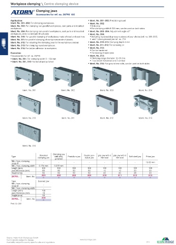 Ident. No. 301–302: For clamping workpieces. Ident. No. 302: