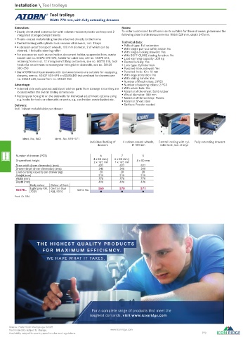 Sturdy sheet steel construction with solvent-resistant plastic worktop and 2 To order customised hard foam inserts suitable for these drawers, please use the