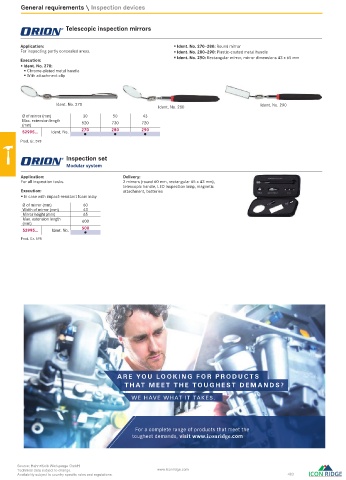 For all inspection tasks. 2 mirrors (round 60 mm, rectangular 65 x 43 mm),