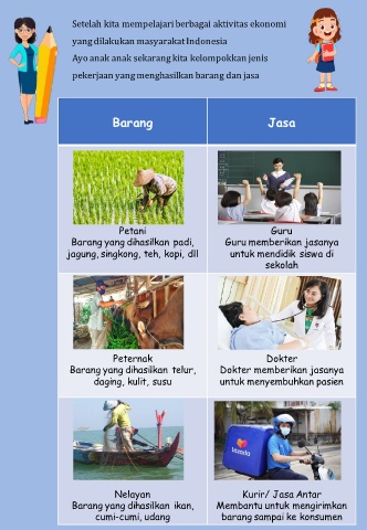 Barang yang dihasilkan padi, Guru memberikan jasanya